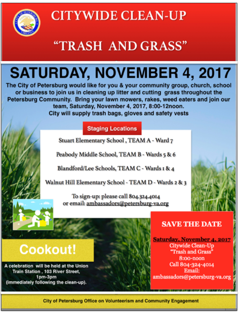 Welcome to the City of Petersburg Office of Volunteerism and Community Engagement! Volunteers are vital to the City of Petersburg, and Volunteerism is an essential community resource that promotes social inclusion and active citizenship. There are many ways to get involved, so coupled with your skills, talents, interest, and motivation to volunteer - we are going to be a great team!